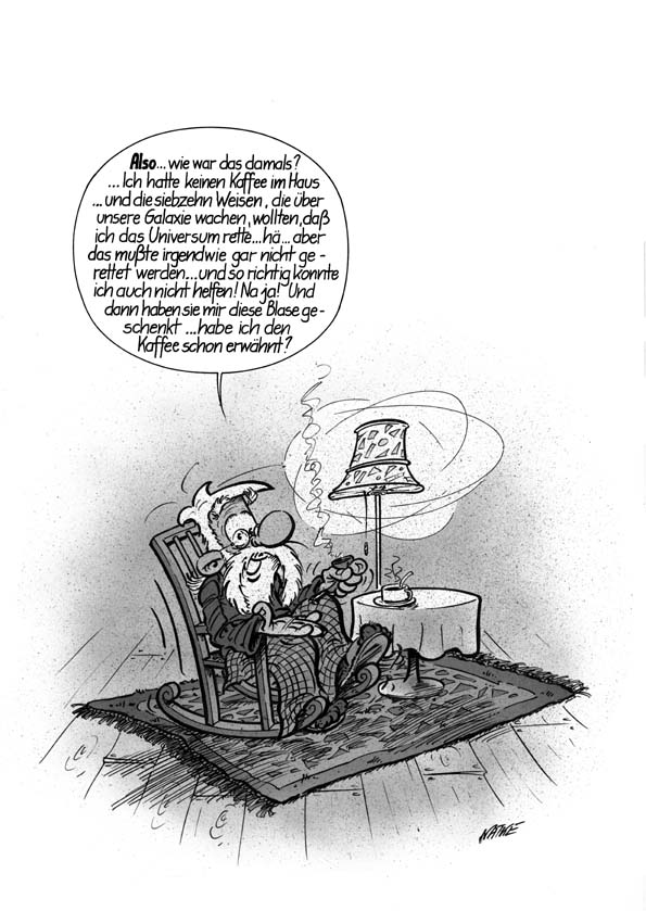 1990 entstand die Geschichte "MacRogers - Die sieben Prophezeiungen". Natke griff eine Idee aus der Kurzgeschichte auf. Dort träumte der "Held" noch davon, in einer Art Seifenblase durch den Weltraum zu reisen, jetzt tat er es wirklich. Ein paar Außerirdische meinen MacRogers sei der Retter des Universums und schicken ihm eine Blase. MacRogers hat aber im Grunde nur ein Interesse: Eine Tasse Kaffee. Die Geschichte erscheint als Vorabdruck in U-COMIX ( ab Nr. 123 ) in Schwarzweiß. 1991 erscheint das Album beim alpha-comic verlag in Farbe.